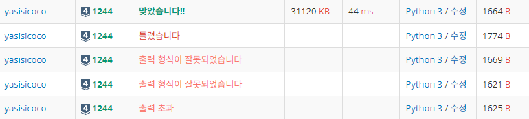 조건문 코드는 생각보다 쉽게 구현했는데, 출력에서 고비였던 문제.
